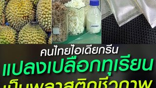 คนไทยไอเดียกรีน แปลงเปลือกทุเรียน เป็นพลาสติกชีวภาพ ย่อยสลาย กินได้ ละลายน้ำ!