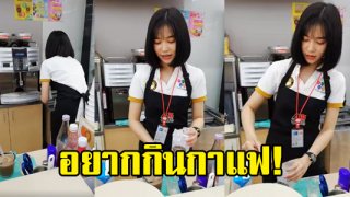 เปิดคลิป “พนักงานชงกาแฟเซเว่น” ผมสั้นสุดน่ารัก