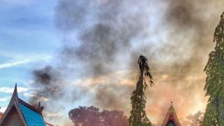เพลิงไหม้ศาลาการเปรียญวัดไผ่ขวาง จ.ฉะเชิงเทรา เสียหายทั้งหลัง