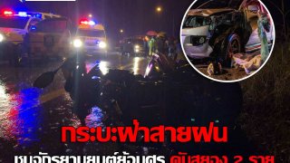 กระบะฝ่าสายฝน ชนจักรยานยนต์ย้อนศร ดับสยอง 2 ราย