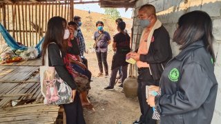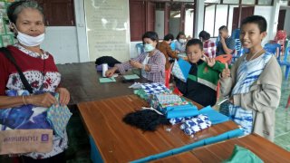 ชาวบ้านร่วมใจกันทำหน้ากากอนามัย เพื่อแจกจ่ายให้พี่น้องประชาชนในหมู่บ้านไว้ใช้ป้องกันเชื้อไวรัสโควิด - 19