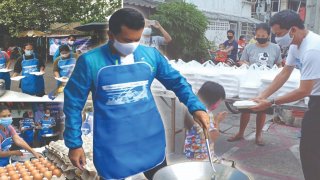 "อดีตรองโฆษก ปชป." ตั้งโรงครัวแจกข้าวกล่อง วันละ 500-1,000 กล่องชุมชนเขตห้วยขวางสู้ภัยโควิด