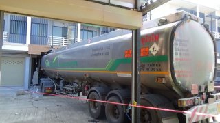 รถบรรทุกน้ำมัน เสียหลักพุ่งชนตึกสามชั้น