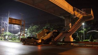กระบะชนท้ายพุ่งขึ้นบันไดสะพานลอย