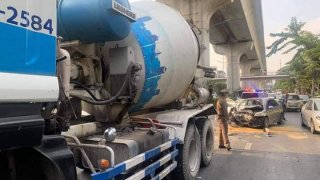เก๋งพุ่งชนท้ายรถโม่ปูน คนขับเสียชีวิต