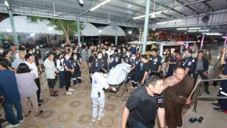 ศพนายกหลักหก พร้อมภรรยา และลูกบ้าน ที่ประสบอุบัติเหตุเสียชีวิต ถึงวัดนาวงและ วัดรังสิต ปทุมธานี แล้วเมื่อเวลา 04.30 น.