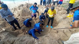 พบเต่ามะเฟืองไข่วางไข่ในรอบ20 ปี รังที่ 5 (มีคลิป)