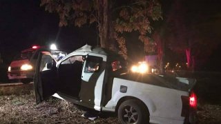 หวิดดับ กระบะหลับในพุ่งชนต้นไม้ข้างทางบาดเจ็บสาหัส
