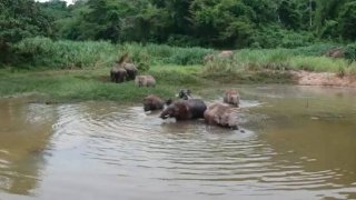 นักท่องเที่ยวแห่กันมาดูช้างป่าเขาใหญ่กว่า30ตัวที่ลงมาเล่นน้ำ