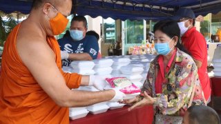 วัดช่องแสมสารจัดทำข้าวกล่องแจกให้ประชาชนให้กำลังใจสู้วิกฤตโควิด19