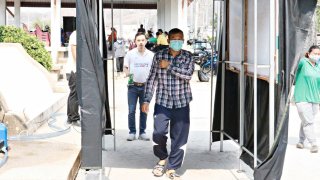 เมืองสัตหีบแจกเจลล้างมือให้พี่น้องประชาชน เร่งติดตั้งอุโมงค์พ่นละอองน้ำยาฆ่าเชื้อ