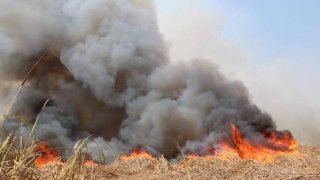 ปทุมธานี ไฟไหม้ป่ากกกว่า100ไร่ หวั่นลามถึงบ้านเรือน จนท.เร่งควบคุม