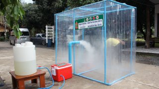 ศรีสะเกษ วัดไพรพัฒนาสร้างตู้พ่นยาฆ่าเชื้อโควิด-19 เปิดให้เข้ากราบปู่สรวงได้ 7 เม.ย.นี้