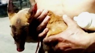 ลูกเก้ง ถูกไฟป่าล้อมหวิดถูกย่างสด