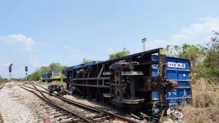 ขบวนรถสินค้า โบกี้บรรทุกตู้คอนเทนเนอร์ ตกราง
