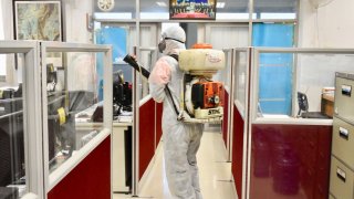 ตำรวจภูธรจังหวัดลำพูน ฉีดพ่นน้ำยาเคมีอาคารที่ทำการเพื่อป้องกันการแพร่ระบาดจาก เชื้อโรคไวรัส COVID 19