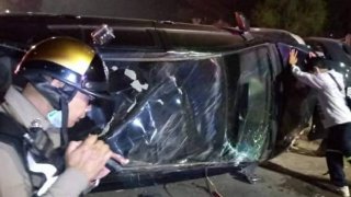 พะเยา หนุ่ม ตชด.ซิ่งเก๋ง ย้อนศร พลิกคว่ำดับคาที่