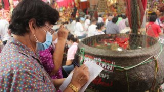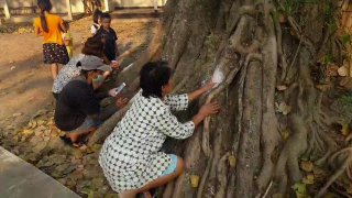 ลูบๆ ถูๆ แห่ขอหวยต้นโพธิ์โบราณ เห็นตัวเลข จะๆ 3 ตัว 2 ตัว (มีคลิป)