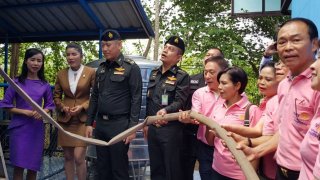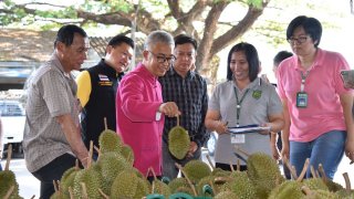 สุ่มตรวจทุเรียนในแผงรับซื้อ - ขายทุเรียนตลาดเนินสูง หลังได้รับการร้องเรียนว่ามีการขายทุเรียนอ่อนเพื่อให้ความเป็นธรรมทั้ง 2 ฝ่าย