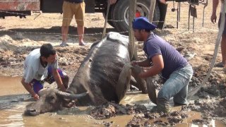 กู้ภัย อบต รุดช่วยควายท้อง 4 ติดหล่มโคลนในคอกนานกว่า 15 ชั่วโมง