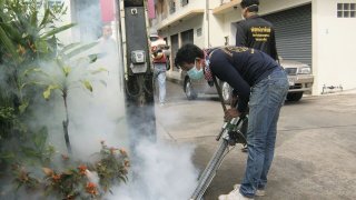 เทศบาลตําบลคลองใหญ่ ณรงค์ฉีดพ่นหมอกควันกําจัดยุงลายป้องกันไข้เลือดออกทุกๆ 3 เดือน