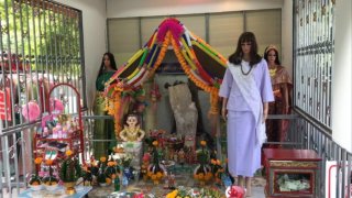 ชาวบ้านแแห่จุดธูปขอโชคจากรูปปั้นพยานาค นามว่าย่านิลณเรศนรดีหลังให้โชคถูกหวยมาแล้วหลายงวด