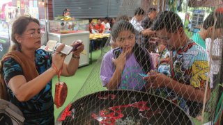ปทุมธานี ประชาชนแห่ดูตัวเลขในอ่างน้ำมนต์ก่อนวันหวยออก