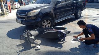 สาวโรงงานสุดซวย ขี่ จยย.ชนกับกระบะ
