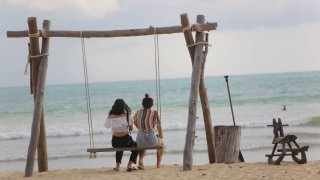 นักท่องเที่ยวพาครอบครัวแห่เที่ยวทะเลเขาหลัก