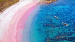 หาดสีชมพูบนเกาะโคโมโด อินโดนีเซีย