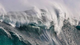 คลื่นยักษ์ที่สวยงามแต่แฝงไปด้วยความน่าสพรึงกลัวที่ Praia do Norte ในเมืองนาซาเร ประเทศโปรตุเกส
