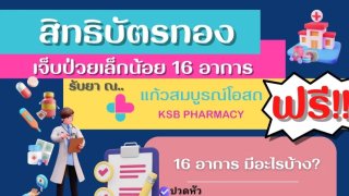 เจ็บป่วย 16 อาการรับยาฟรีไม่มีค่าใช้จ่าย สำหรับผู้มีสิทธิบัตรทอง