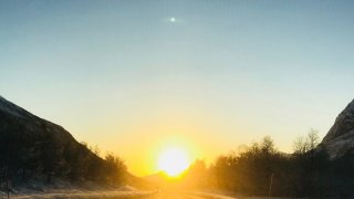 แสงแรก ในรอบปีที่นอร์เวย์ พระอาทิตย์ขึ้น สวยงดงาม