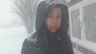 สาวอิสาน ใน นอร์เวย์ พาตักหิมะ ออกจากระเบียง พร้อมได้ออกกำลังกาย ไปในตัว ในวันที่หิมะตกหนัก