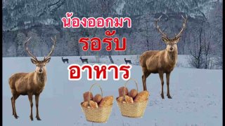 น้องกวางออกจากป่า มายืนรออาหารข้างบ้านคน ด้วยความหวัง ในฤดูหนาว ที่นอร์เวย์ พื้นดินปกคลุมไปด้วยหิมะ มาดูกันค่ะว่าน้องกวางจะได้อาหารใหม?