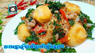#กะเพราวุ้นเส้นเต้าหู้กรอบ