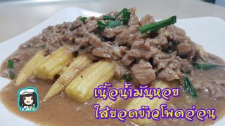 สอนทำเนื้อน้ำมันหอยใส่ยอดข้าวโพดอ่อน และเคล็ดลับง่ายๆทำให้เนื้อนุ่ม