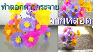 ทำดอกไม้(ดอกดาวกระจาย)จากหลอดพลาสติก ทำง่าย สวย เหมือนของจริงมาก..
