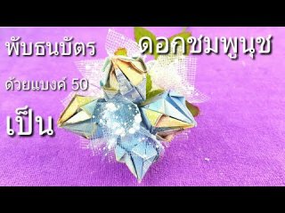 พับธนบ้ตรแบงค์ 50 เป็นดอกไม้ ดอกชมพูนุช