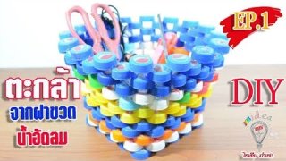 DIY ตะกร้าจากฝาขวดน้ำพลาสติก
