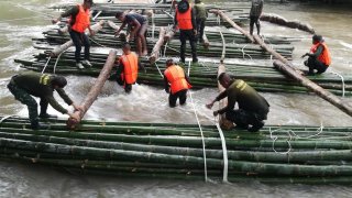 “ทหาร ร.29” เร่ง สร้างสะพานลูกบวบ ช่วยชาวไทรโยค หลังน้ำซัดแรง ถนนพัง