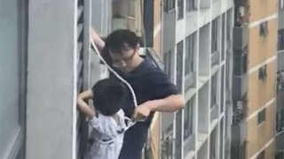 พ่อชาวจีน ปีนตึกด้วยมือเปล่า เพื่อช่วยชีวิตลูกชายที่ติดอยู่ชั้น 7