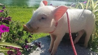 ลูกหมูได้รับชีวิตใหม่ หลังบังเอิญพลัดตกจากรถบรรทุกที่มุ่งสู่โรงฆ่าสัตว์