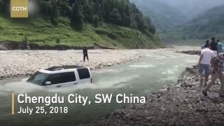 ของฟรีไม่มีในโลก! ชายจีนกุมขมับ แลนด์ โรเวอร์ จมแม่น้ำหลังไม่อยากเสียค่าล้างรถ