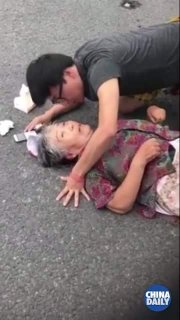 พลเมืองดีช่วยหญิงชราล้มหัวฟาดพื้นเลือดนองในจีน