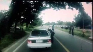 หวิดดับทั้งคัน! หนุ่มใหญ่พุ่งตัวคว้าพวงมาลัย-หยุดรถ