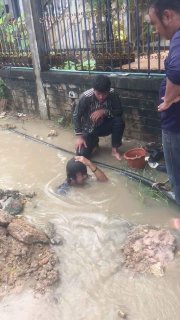อึ้งจนด่าไม่ลง.....สาวฉุนน้ำไม่ไหล ......เดินมาหน้าบ้านเจอช่างตากฝนมุดน้ำพยายามซ่อม