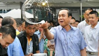 พลเอกประยุทธ์ นายกฯ นำ ครม. ผบ.เหล่าทัพ รดน้ำ ขอพร ป๋าเปรม ที่บ้านสี่เสาฯ คึกคัก