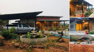 ไอเดียการทำบ้านไม้ผสมปูน โดดเด่นร่มรื่น ด้วยงบ 130,000