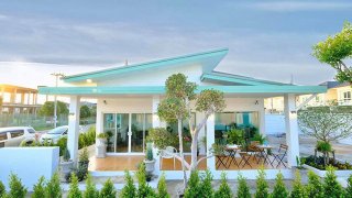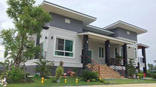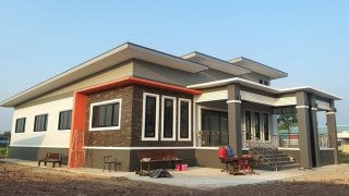 บ้านชั้นเดียวสไตล์โมเดิร์นพื้นบ้านยกระดับ 3 ห้องนอน 2 ห้องน้ำ พร้อมโรงจอดรถ